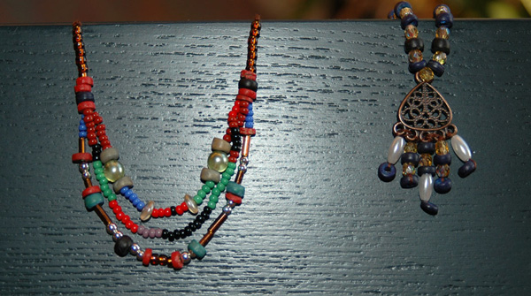 Schmuck wird in der Bibel öfters erwähnt, so z.B. in Jesaja 3,18 wo es heißt: "zu der Zeit wird der Herr den Schmuck an den kostbaren Schuhen wegnehmen und die Stirnbänder und Spangen, die Ohrringe, die Armspangen, die Schleier..." In Israel und Palästina wurde zu besonderen Angelegenheiten Schmuck getragen. Er war aus Gold, Silber und anderen Metallen mit Edel- oder Halbedelsteinen oder auch mit Glas besetzt. Die Israeliten verwendeten Halbedelsteine, die wie Perlen geschliffen oder poliert wurden. ![]() Diese Schmuckherstellung verlangt Zeit und Geduld daher kann sie auch nicht in enem normalen Figurenkurs hergestellt werden sondern nur in Zubehörkursen.